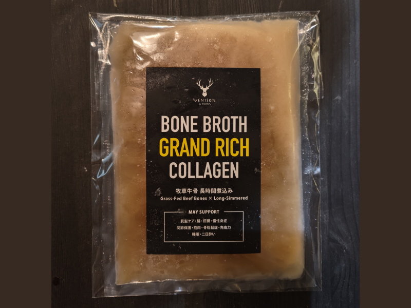 GRANDRICH COLLAGENは、一般的なボーンブロスよりもさらに栄養価を高めた特別設計の濃厚ボーンブロスです。 原材料に、コラーゲン含有量の高いNZ産牧草牛の子牛骨と、濃厚な骨由来栄養を持つ北海道産牧草牛の成牛骨を採用。 この2種の骨ブレンドにより、骨由来のコラーゲン・アミノ酸の抽出量が高く、身体の内側からハリ・艶・筋肉サポートに働きかける栄養価の高さが魅力です。 圧力をかけずに長時間丁寧に煮込むことで、コラーゲンがアミノ酸レベルまで自然に分解され、吸収率の高い栄養形態に仕上げています。 そのため、体内で効率よく利用されやすく、美容・健康・体調管理に取り入れやすい一杯です。 ●こんな方に ・美容・エイジングケア(肌・髪・爪) ・筋肉づくり・トレーニング後の補給 ・栄養密度の高いドリンクを探している方 ・日々の体調管理・栄養補給を手軽にしたい方 ・消化にやさしい栄養ベースがほしい方 ※一般的なボーンブロス製品と比較して、 コラーゲン由来アミノ酸がより濃厚で抽出性の高い設計です。 |