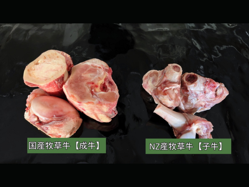 ・NZ産牧草牛(子牛)骨 ・北海道産牧草牛(成牛)骨 ・ゲランド塩 ※化学調味料・保存料・香料は使用せず、骨由来の天然成分のみを抽出。 子牛の柔らかな骨は栄養素が溶け出しやすく、成牛骨は濃厚なミネラル・旨味を引き出します。 この異なる2種類の骨を掛け合わせる製法により、 一般的な骨スープ製品では得られにくい「濃厚なコラーゲン抽出」と「深い滋味」を両立しています。 |