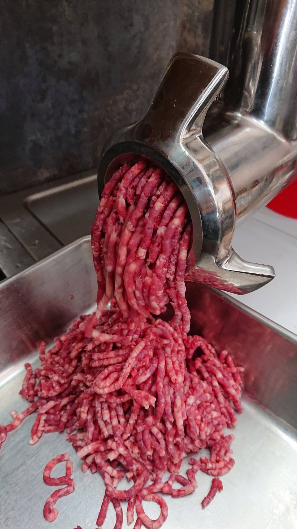 冷凍肉やくず肉をミンチにするのでなく生肉の塊からすることで状態や鮮度をキープできます。